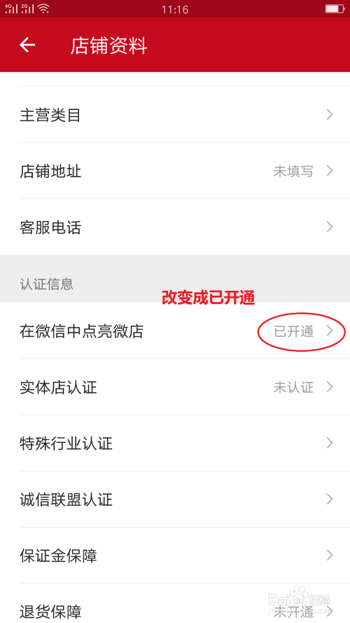 在回到店铺资料页面中点亮微店就显示已开通了,如图