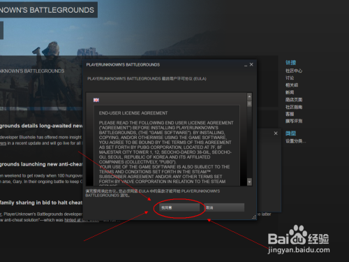 进入游戏后我们会看到如图所示的界面,这个时候选中第四个选项【PLAYERUNKNOWN'S BATTLEGROUNDS 】 ,然后会看到右侧有个 【开始】按钮,如果是英文的话位置是一样的!出现服务选项的话就点击【我同意】按钮!如图所示: