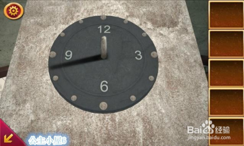 将表盘放到左侧的石台上,将木棍放到表中间,会出现一个影子,按照影子的位置得出8点~9点之间的提示,即为8点30分。将此时间输入到右侧木架上的钟表上,盒子开了,得到一把园艺剪。