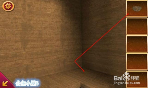 点击墙上如图所示部分,按时刚刚在第一场景中墙上图画所得到的提示,将线上的木棍摆好方向,得到一把钥匙。