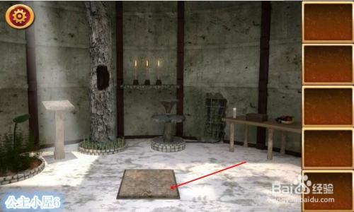 返回,再点击双层石台,会发现石台上出现钥匙。使用钥匙打开下方小门,门开过关!!