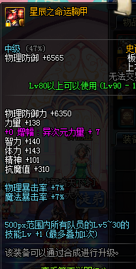 上衣加技能的装备不多,星辰板甲算一个,还有就是异界气息准备