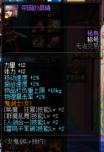 还有就是称号等,加技能的称号不多,不过有一件是最容易获得就是“帝国的晨曦”