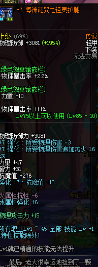 装备的选择有很多,下装最出名的就是+1技能的海神腿,南瓜裤等,这些都比较很容易的获得