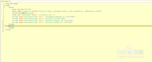 第一步,创建静态页面icon.html,引入ionic和AngularJS的相关文件(JS和CSS),修改title标签的文字展示内容,如下图所示: