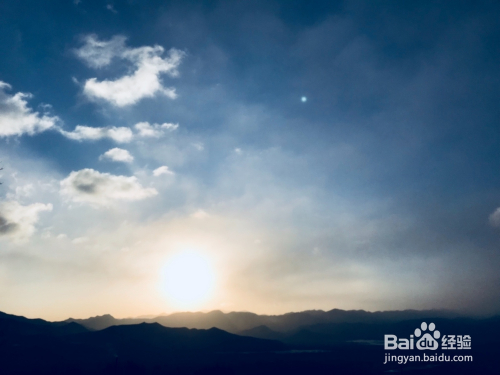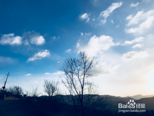取景的时候要背景蓝天,突出蓝天的湛蓝,还可以加入一些景物的点缀,比如树木、灌木。