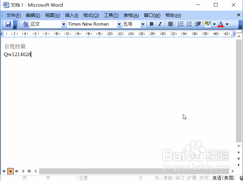为了便于说明,我们先在文档中输入:百度经验,qw1214026。