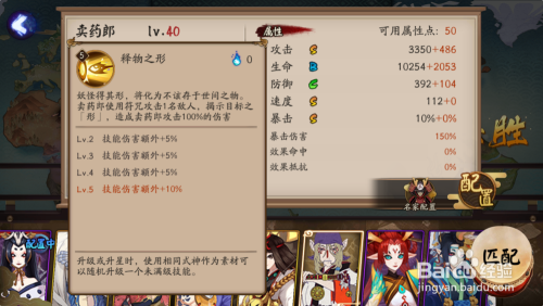 了解完卖药郎的获得方式之后,我们再来看看这个SSR式神有什么特点吧。普通攻击并没有特点,被动技能是对敌人进行看破并且标记,标记数量123对应的敌方血量分别是30%血量40%血量和50%血量。这个标记在卖药郎没有发大招之前没有任何的意义。