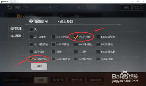 有的房间设定的是只用冷兵器,不能用枪的,有的设定只能用哪种交通工具,有的房间设定只能用什么武器 。