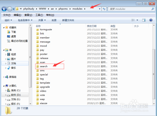 第五步: 模块的文件,都是放在modules这个文件夹。接下来,我们就要找到search这个模块。