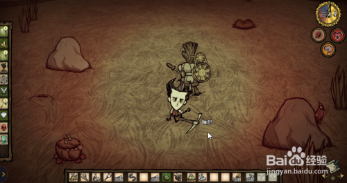 2块礈石和树枝就能解锁一把简易镐子,饥荒里的所有矿石资源都能开采出普通石头。