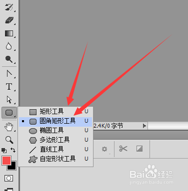 选中圆角矩形工具,用圆角矩形工具在文档中画一个正圆角,颜色为黑色,