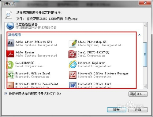 继续点击“始终使用选择的程序打开这种文件”。然后确定。