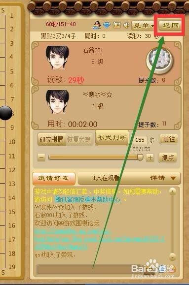 观战学习经验以后可以选择“返回”再次进入游戏试试可以了吗。