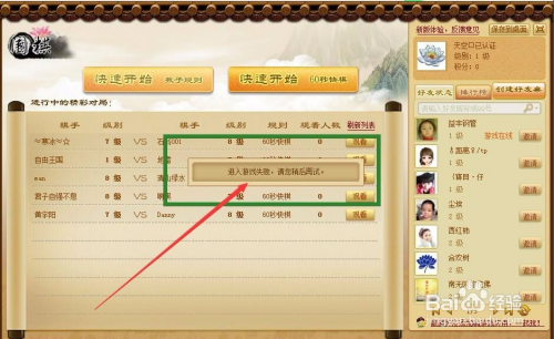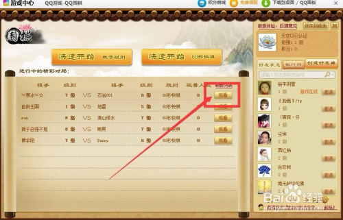 我们可以选择“观看”状态看别人怎么玩,现场学习一下嘛O(∩_∩)O哈哈~