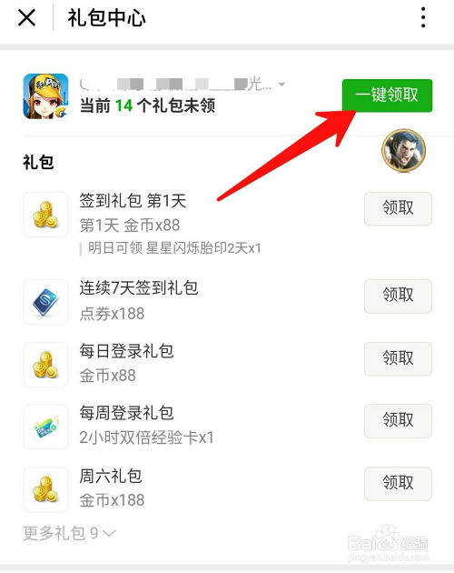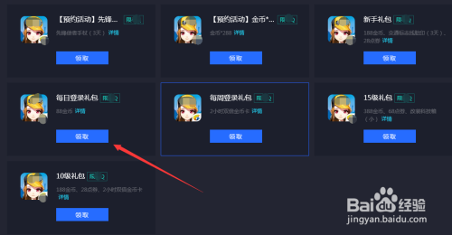 然后即可进入相应的礼包领取界面,点击图示位置中的对应的“领取”即可领取相应的礼包,注意这里只能手Q的用户进行领取。
