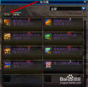 在商店里面,上面有两个选项,我们要进入到“特殊1”里面,如图所示。