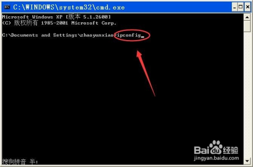 此时会弹出一个输入命令的对话框,将输入法调成英文,然后输入“ipconfig”,按回车键。