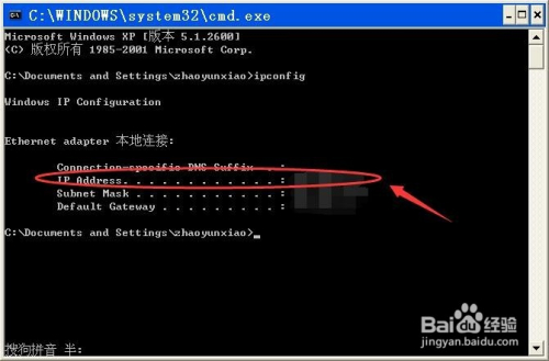 这时,在显示的信息中就会看到电脑的IP地址。