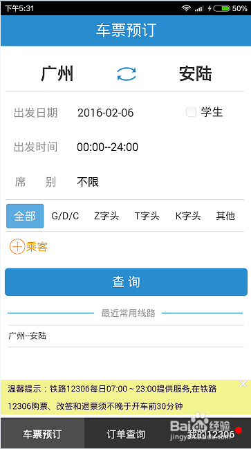 第一步,先抢到一个不热门的线路火车票,选择终点和始发站