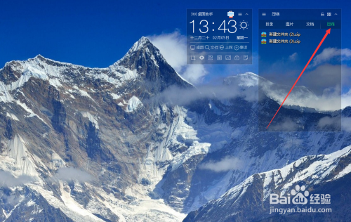 在刚刚的准备工作做完之后,电脑右上方出现了这个小工具的具体功能图标设置,点击“桌面”按钮,如图所示~
