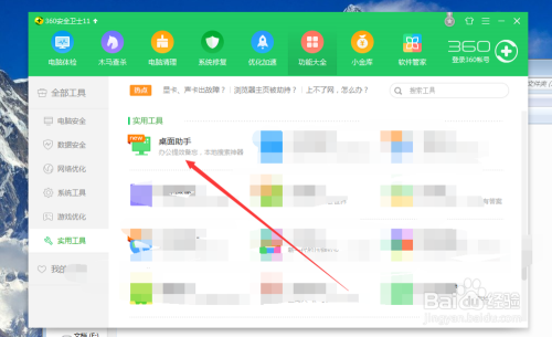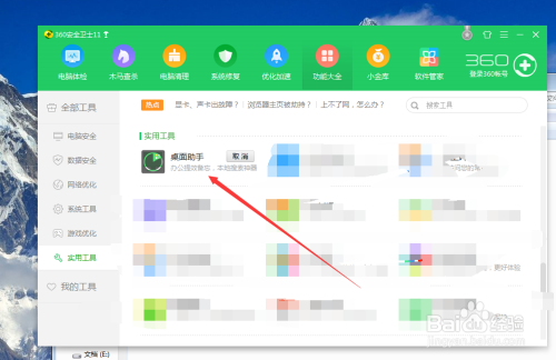 在“实用工具”找到“桌面助手”这个实用工具选项,点击这个选项,开始下载这个“桌面助手”功能,如图所示~