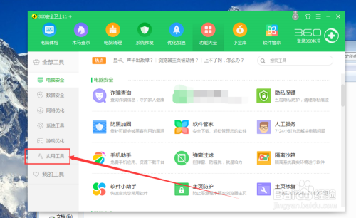 在“功能大全”界面中找到“实用工具”的选项,在“功能大全”的左下侧菜单中,如图所示~