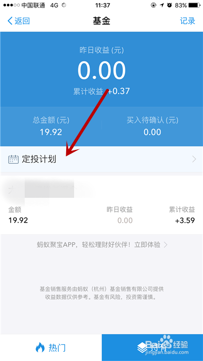 如果你之前买过定投的产品,那么在这个界面的下方,就会有一个关于定投计划的相关内容。点击一下。
