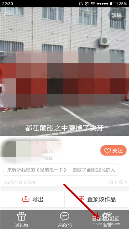 选择一首你想要分享的歌曲,然后在歌曲的播放界面中点击最右下角的转发按钮。