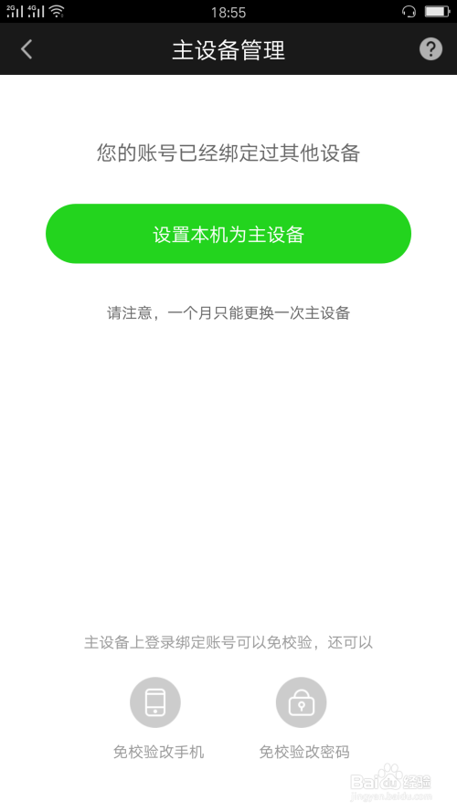 点击主设备设置,如图完成操作,提示你改账号已经被绑定了,说明是多人使用该账号的