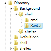 为新建的子项取一个名字,比如,我想在桌面右键菜单中添加一个迅雷的启动菜单项,我就取名为 XunLei。请注意,这个英文名称可随自己心愿,原则上只要你能区分辨别便好。