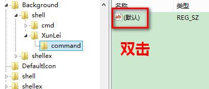 再选中新建的 command 子键,在右边窗口中双击“默认”。