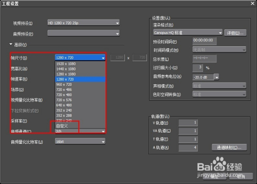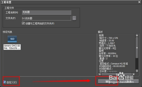 在edius里面,我们可以点击“自定义”进行编辑尺寸的确定