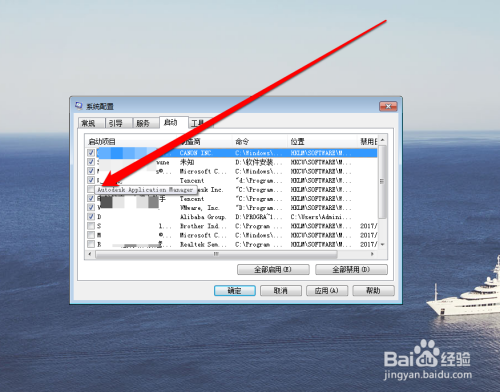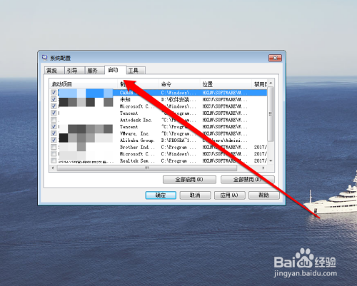 在系统配置界面的启动项,查看系统已有的启动项。