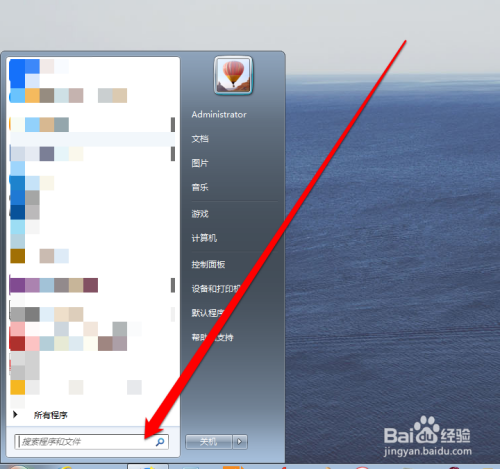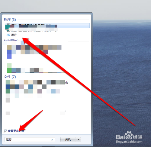 在开始菜单的搜索框内,输入运行搜索运行程序。