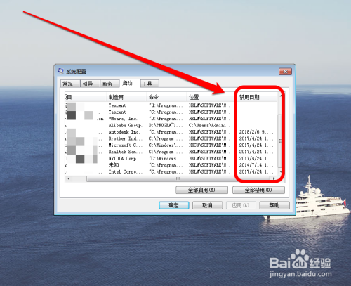 我们找到不需要开机启动的程序,取消该程序的勾选,点击确定。查看程序的禁止启动时间,也可以看到系统都禁止了哪些启动项。