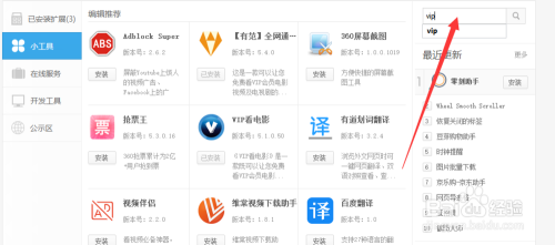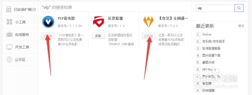 然后进入到扩展栏里,在扩展栏里的左上方输入免费看电影电视剧的插件。
