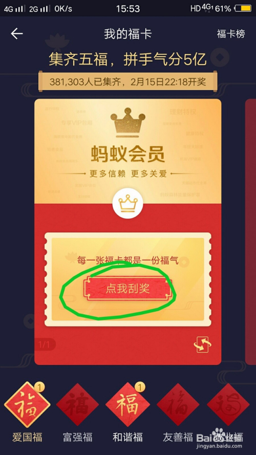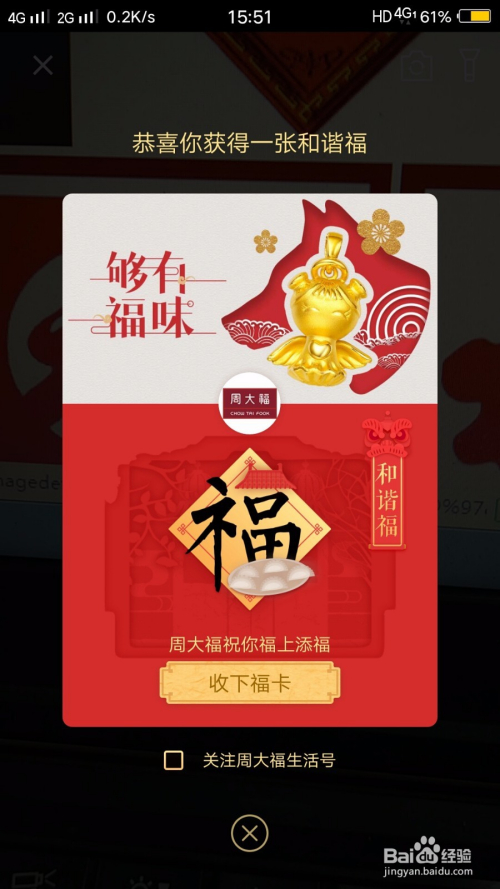 但是每天只能扫出两张福卡哦,扫满2张后你再怎么扫还是扫不到的,然后到我的福卡中查看自己现有的福卡