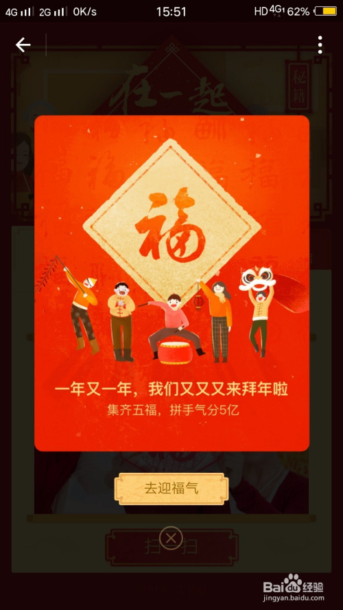 当然你也可以在首页的过福年窗口直接点击进入。这时候就会跳出一个迎福气的入口。