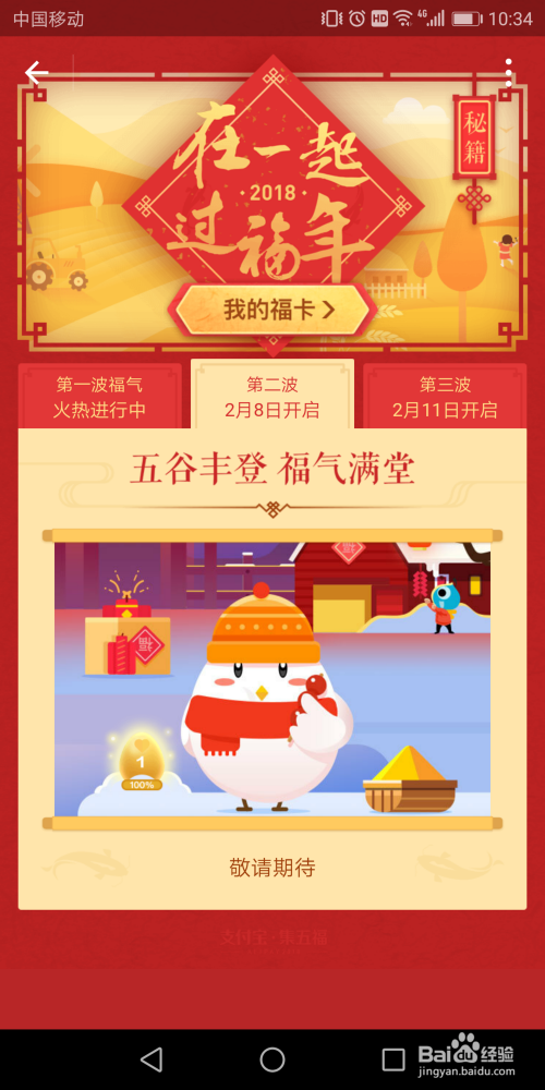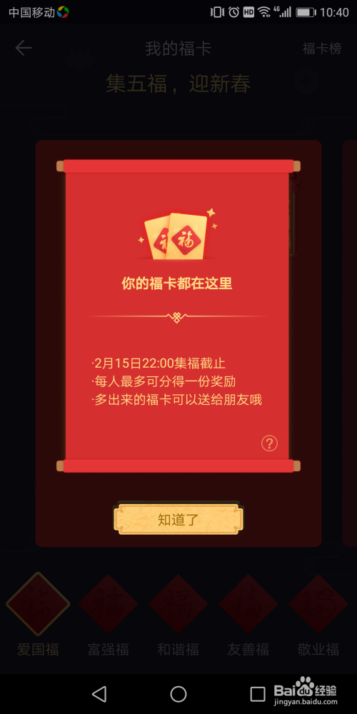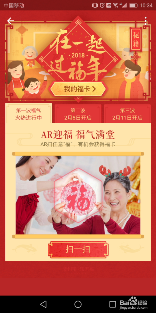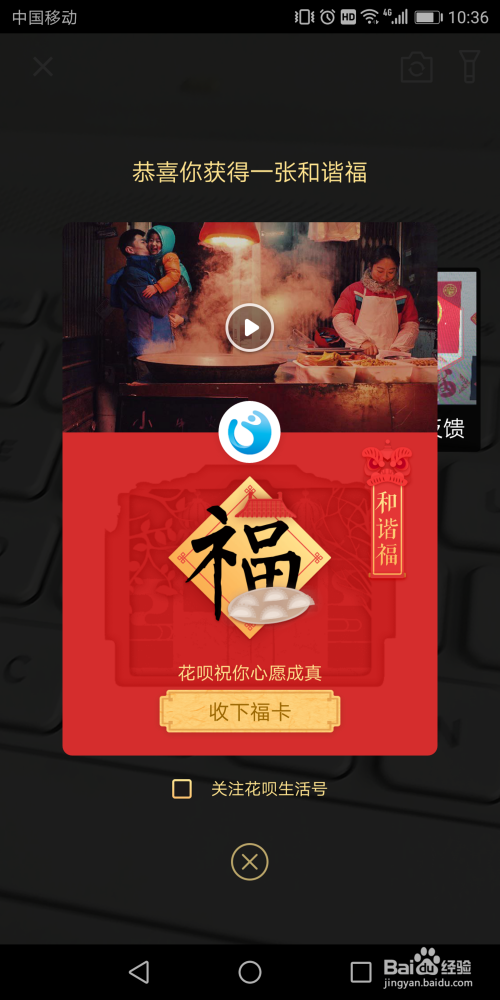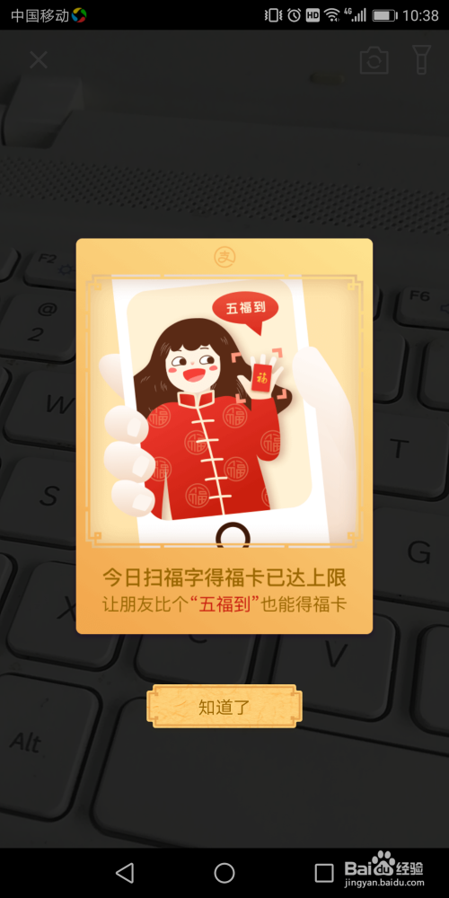 当扫描成功后,页面就有可能弹出一个福字,点击页面上的【收下副卡】。