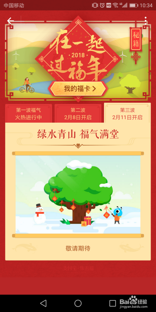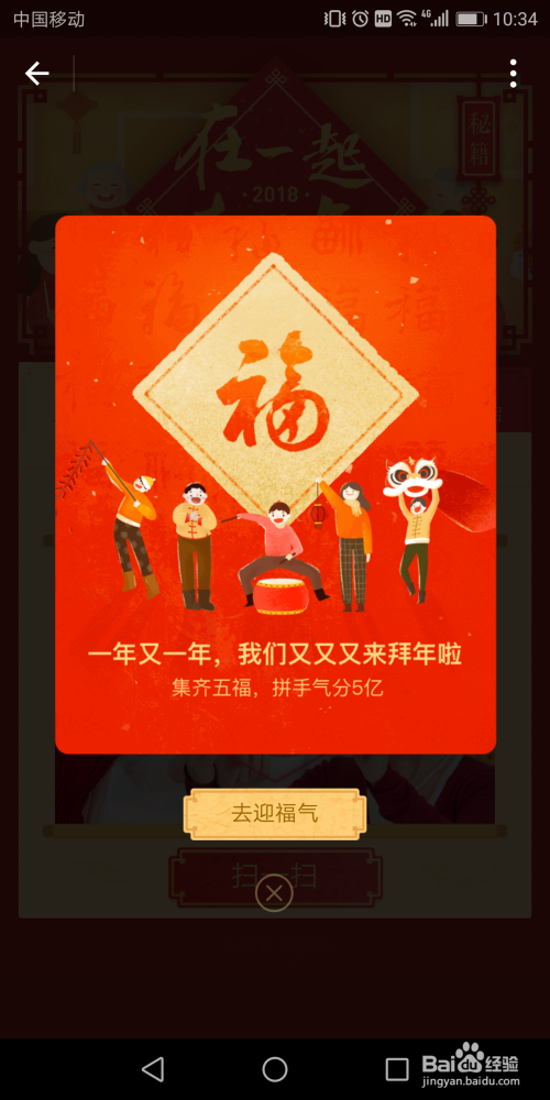 进入后会有一个提示信息,“集齐五福,拼手气分5亿”,看完后关闭这个提示信息。