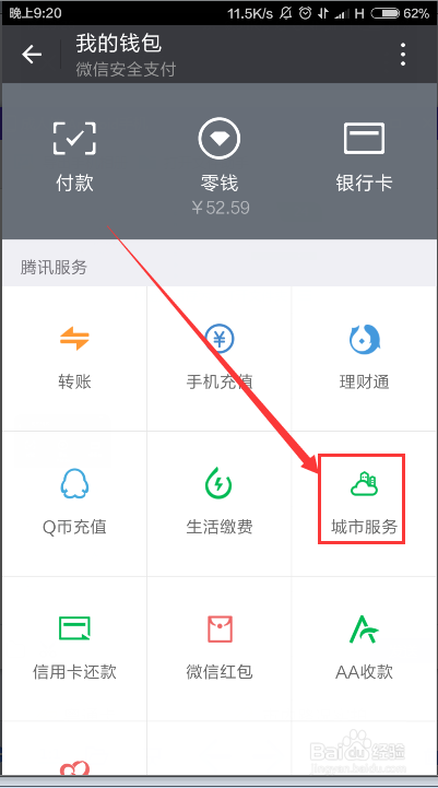 第三步,我们选择其中的“城市服务”系统会自动定位我们所在的城市