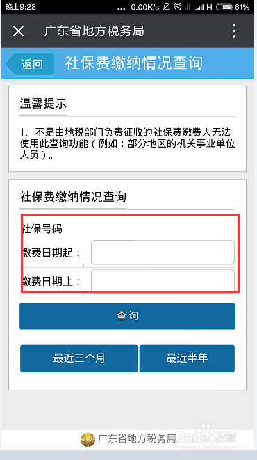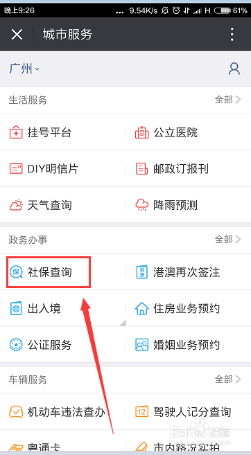 - 系统会自动定位我们所在的城市,当然也可以手动添加地址,如果当地的社保局有开通微信服务窗口的话,就可以查询社保缴纳情况了
