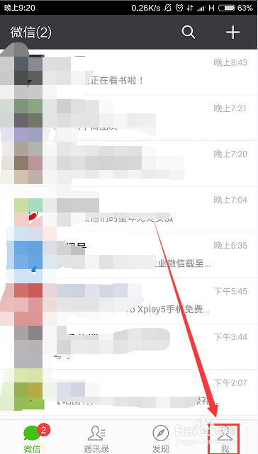 第一步,启动微信,进入到右下角的“我”,微信的好多服务功能都是叠加放到这个项目的分类下边的,如图所示。