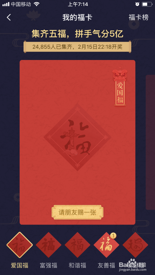 另外我们点击福卡榜还可以看到我们的朋友有几张福卡,还可以找支付宝朋友索要自己所缺的福卡,这样能够快速集齐五福,当然还可以邀请朋友开通支付宝,为自己集齐五福创造机会。