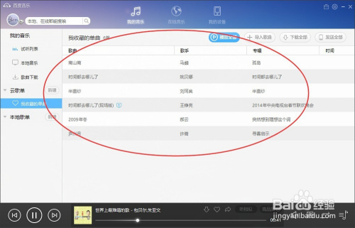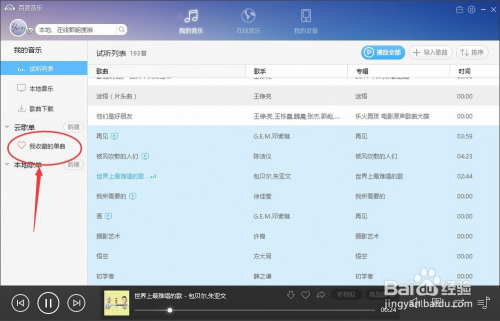 现在在这个里面就可以看到,之前收藏的所有歌曲,可以打开试听