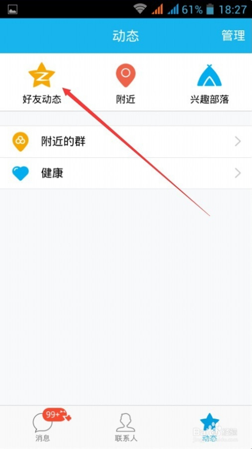 在手机上点击QQ图标,打开并登录我们的QQ,然后点击QQ主界面右下角的“动态”图标。