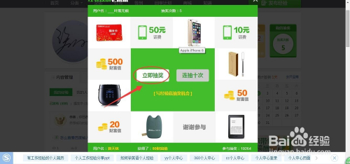 现在就可以进行抽奖了,可以看的我的抽奖次数还有四次