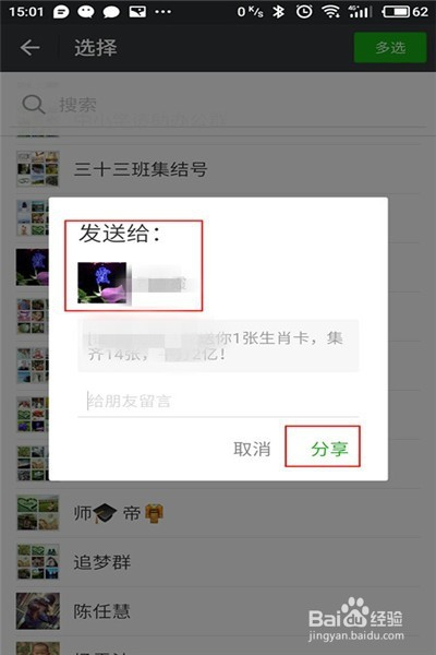 点击一下自己的微信好友,然后生肖卡的链接就出现了,点击一下分享就可以送给好友了。但好友需要下载领取。