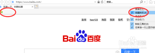 如果我们在收藏了某个网站之后希望能快捷的打开它,那么我们是需要从设置里展开它的,我们先以IE为例子,我们打开百度。